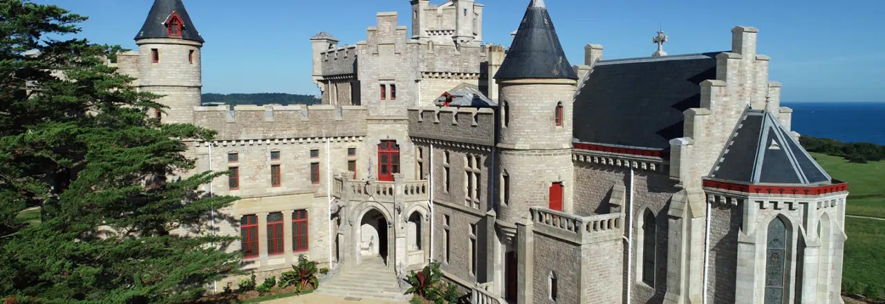 North of Hendaye, neo-Gothic residence designed as a scientific observatory. Landscaped park overlooking cliffs and the ocean. Conservatoire du littoral protecting fauna and flora.