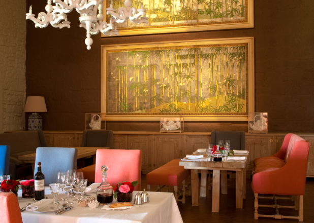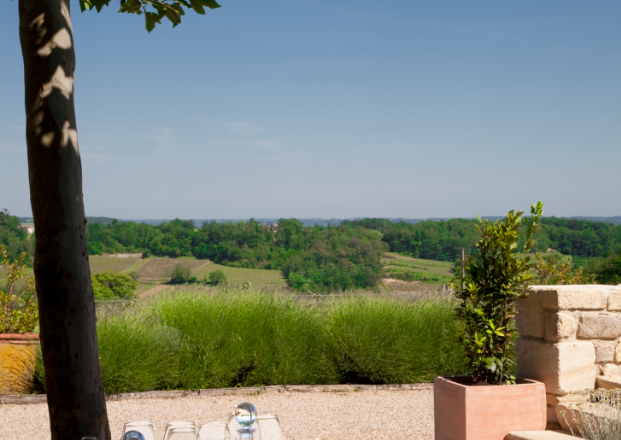 Gourmet cuisine using products from an on-site permaculture kitchen garden and local suppliers. Terrace overlooking the vineyard slopes and the Dordogne Valley. 1 Michelin Green Star.