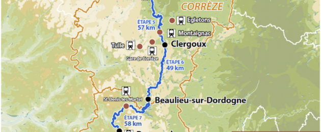 Attraction and activity EVAUX-LES-BAINS - BEAULIEU/DORDOGNE La Vagabonde en Nouvelle-Aquitaine500 km cycling route through Creuse, Corrèze and Lot: from Lake Vassivière to the Causses du Quercy via the Millevaches plateau and the Dordogne valley. Greenways and low-traffic shared roads. For experienced riders.